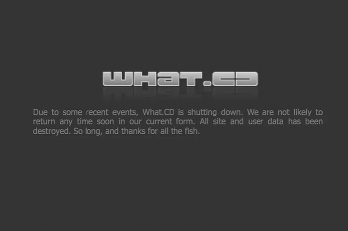 What.CD sitesine giriş yapıldığında "Son dönemlerdeki olaylar sebebiyle What.CD kapanmıştır. Şu anki duruma göre kısa süre içerisinde geri dönmeyi düşünmüyoruz. Tüm sitedeki içerikler ve kullanıcı bilgileri yok edilmiştir. Şimdilik herşey için teşekkürler!" yazısı karşımıza çıkıyor.
